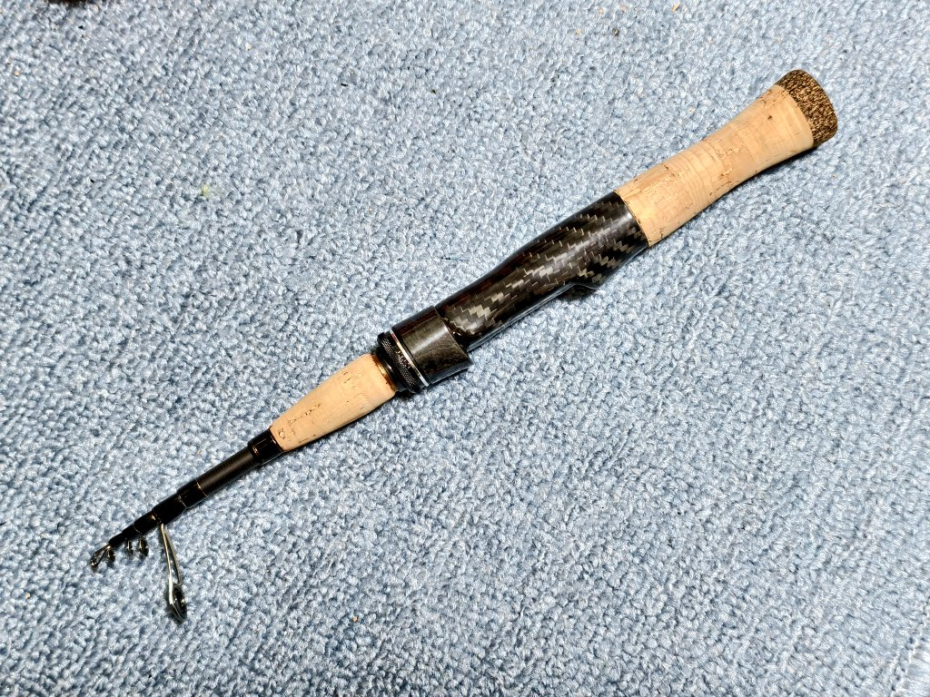 デザインの基本路線は依頼主様の意向に沿っていますが、往年のウエダやM&Nリスペクトなフォアグリップを採用して、そこからトゥイット動作に最適化しながらバランスを取っています。良い竿使ってるね!え?それテレスコなの?という声が聞けると良いなぁなんて妄想しています。