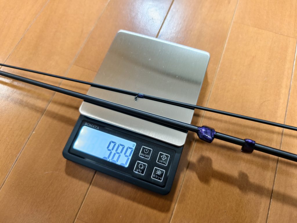 この竿は、本当の意味での「軽さは正義」を体験して頂くために製作しました。実は振動伝達感度については、ある程度の質量を与えつつ、グリップの接触面積を増やしたほうがよく伝わります。しかし軽いというだけでそれなりの振動検知はできますし、荷重変化感度についてはこの軽さゆえの世界観があります。ぜひ体験してみてほしいです。