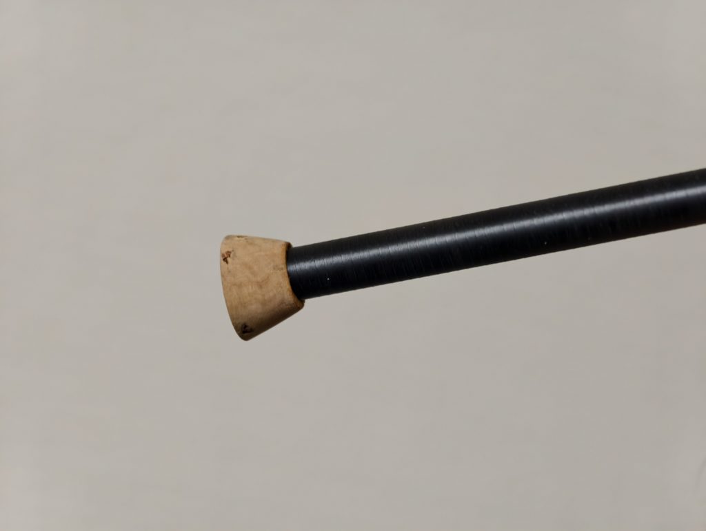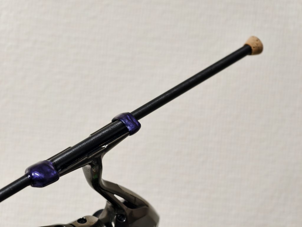 エンドグリップには、テネシーフードの脱落防止を兼ねて極小のコルクを採用。せっかくなので4Aクラスのコルクリングから削り出し、穴埋め無しで取り付けています。こちらは過去にフォロワーさんが組んでいた竿のオマージュ(パクり)です(^_^;)
